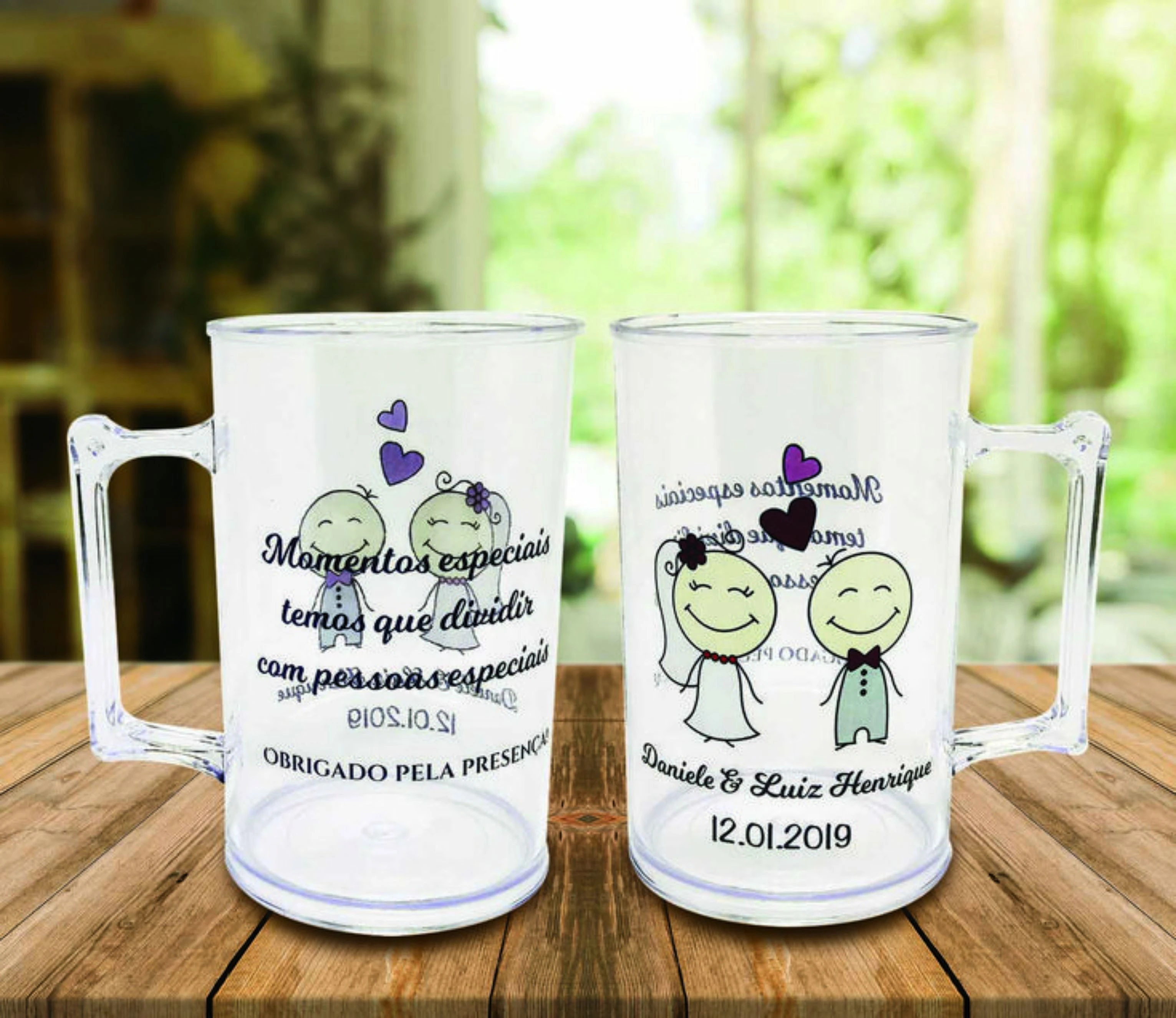 Eternize seu casamento com canecas acrílicas personalizadas e proporcione aos seus convidados uma recordação única e especial desse dia inesquecível.